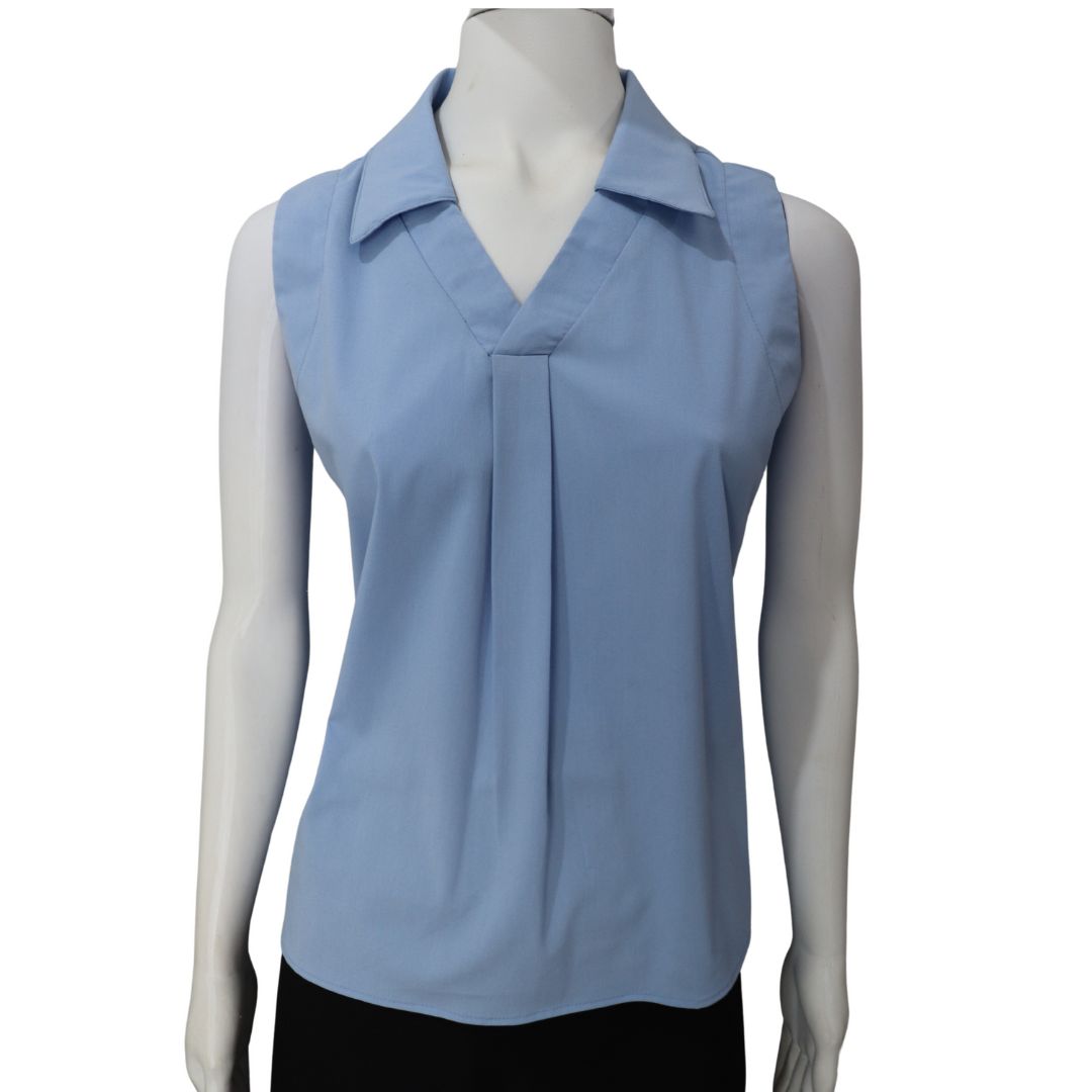 A blusa cavada com gola V é ideal para quem busca conforto, leveza e um visual moderno no ambiente profissional. A gola em V valoriza o colo e traz elegância à peça, enquanto o modelo cavado garante maior liberdade de movimentos e ventilação.